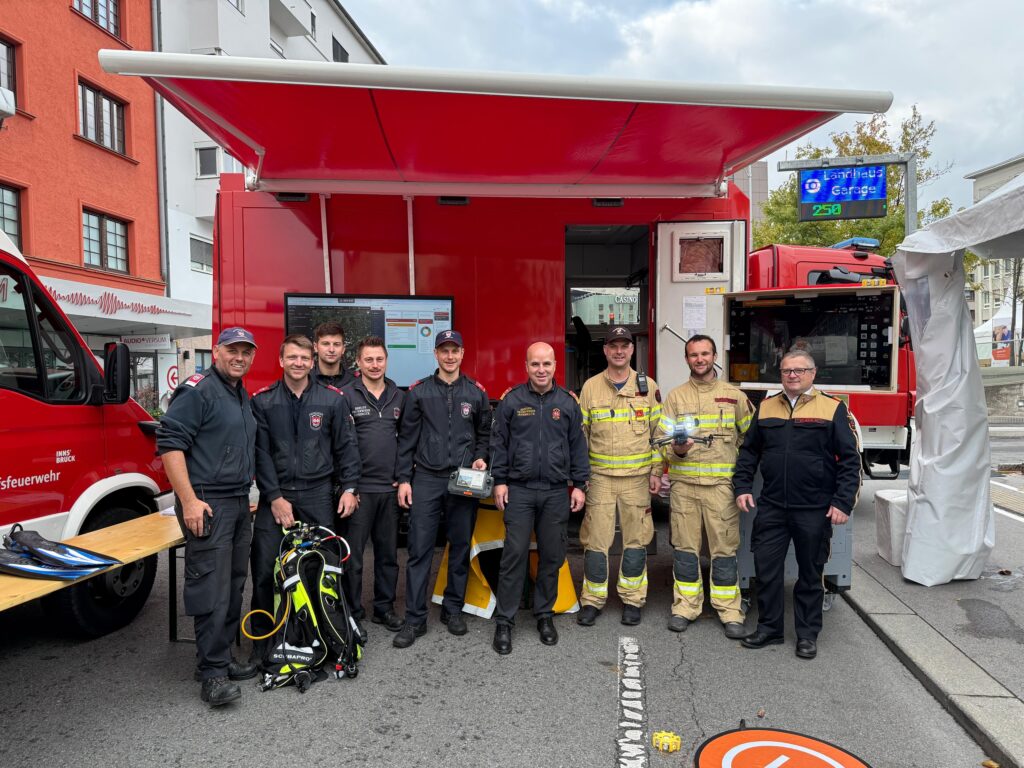 Am Landhausplatz präsentierten die Taucher der Berufsfeuerwehr gemeinsam mit dem Drohnenteam und den Freiwilligen Feuerwehren Amras und Arzl ihre vielfältigen Einsatzmöglichkeiten – von Unterwasserrettung bis zur Luftunterstützung. Die Besucherinnen und Besucher konnten hautnah erleben, wie vielseitig die Einsatzbereiche der Feuerwehr sind – von technischen Hilfsmitteln bis hin zu Spezialausrüstung für besondere Einsatzlagen.