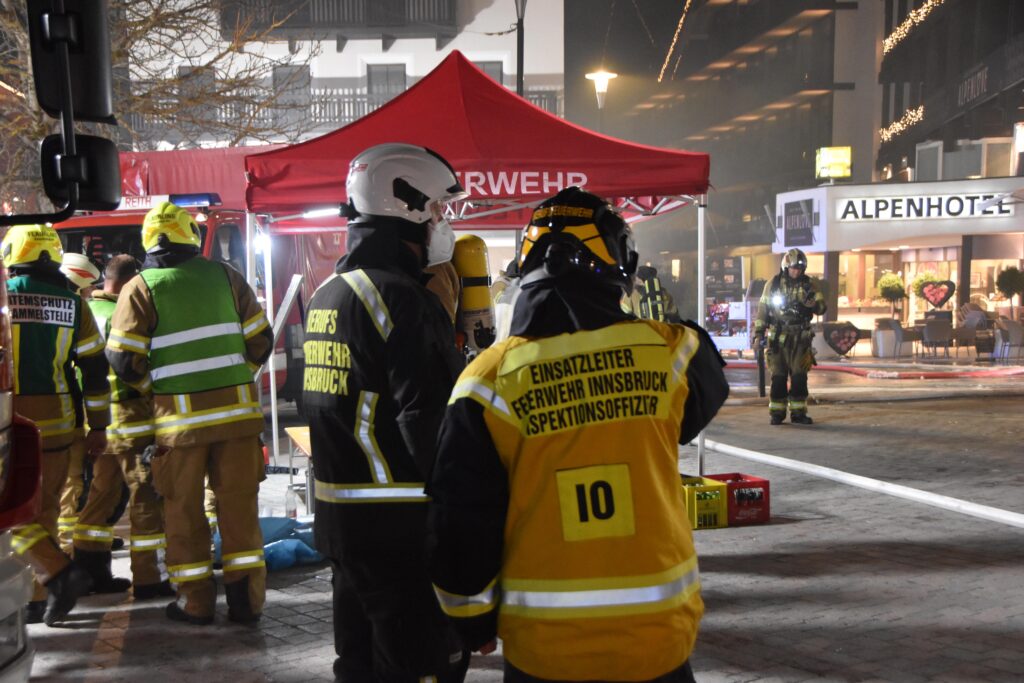 Beim Großbrand im Hotel Klosterbräu in Seefeld standen auch Einsatzkräfte aus Innsbruck im überörtlichen Einsatz und unterstützten sowohl die Brandbekämpfung als auch die Einsatzleitung.